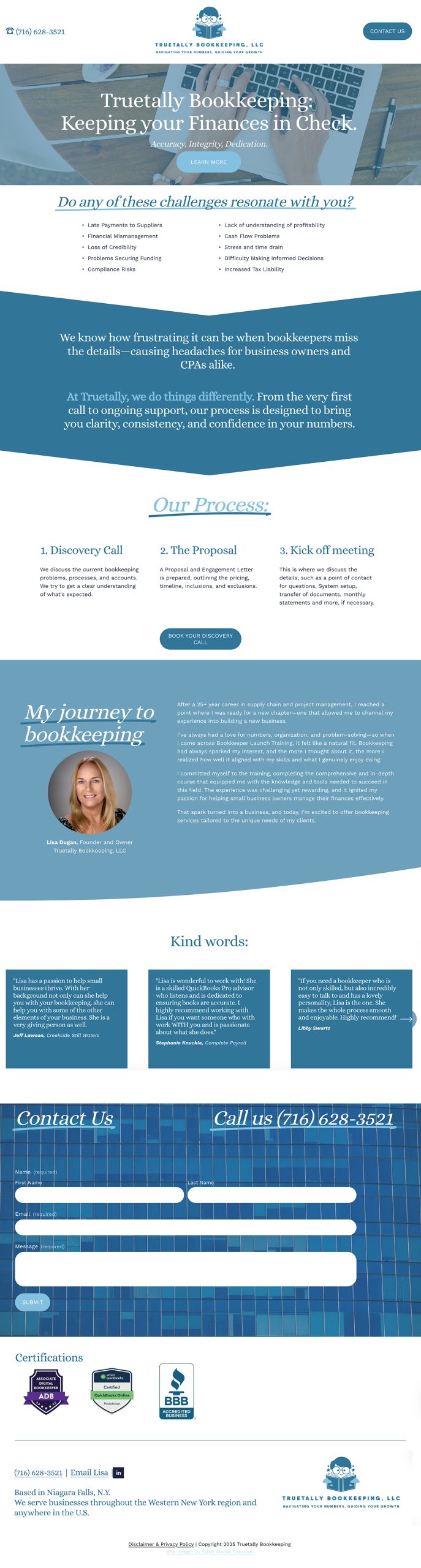I’ve also had the pleasure of recently designing a one page site for Lisa Dugan of Truetally Bookkeeping. Lisa started her business within the past year and is already having great success! She needed a web presence that she would easily be able to modify and expand as time goes on. We used Squarespace for this design.
